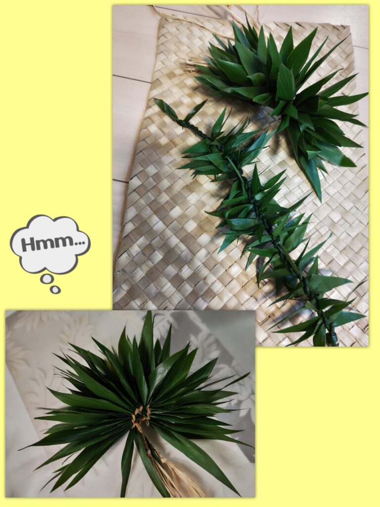 ティーマイレは昨年のオニエ゙コンペでホノルルで編んで以来。ラウアエ編みはフロートパレード用にヒロのクム宅で編んだけど😅どうもこちらの手法は苦手だ。三つ編みで編んでいくのだけど下手過ぎで何度かやり直す😥そのうちにフレッシュな葉っぱが折れてくるしね〜でもKahikoで使うのだから自分で編まないと!その為の練習だ✌️写真は所属ハーラウでレッスン前に久しぶりのワーク、ココは途中まで仕上げて自宅で完成。ついでに頂いたハランで練習してみた。何度やってもフレッシュな葉っぱ🌿のラウアエ編みは苦手だな。なんとか本番用のは綺麗に作らなくちゃ、はい頑張ります私😄